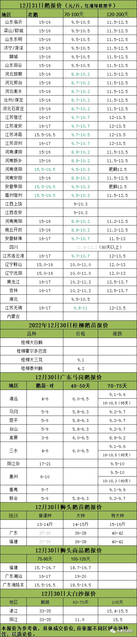 2022年12月31日各品种鹅苗价格