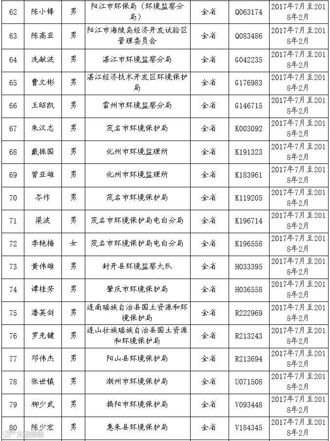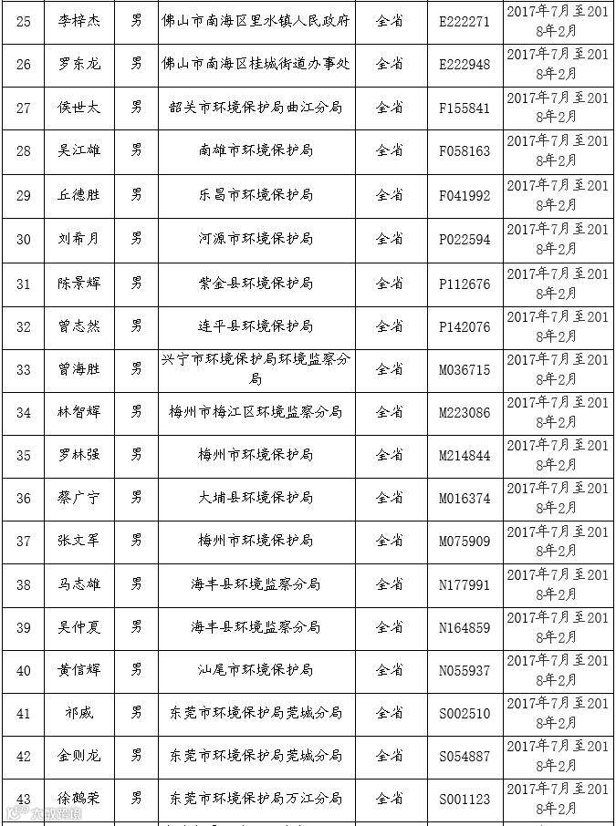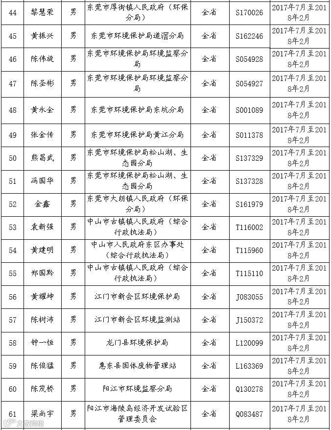 临时调整广东省人民政府《行政执法证》执法区域的“广东省2017-2018年大气和水污染防治专项督查”驻点督查人员名单(第三批)