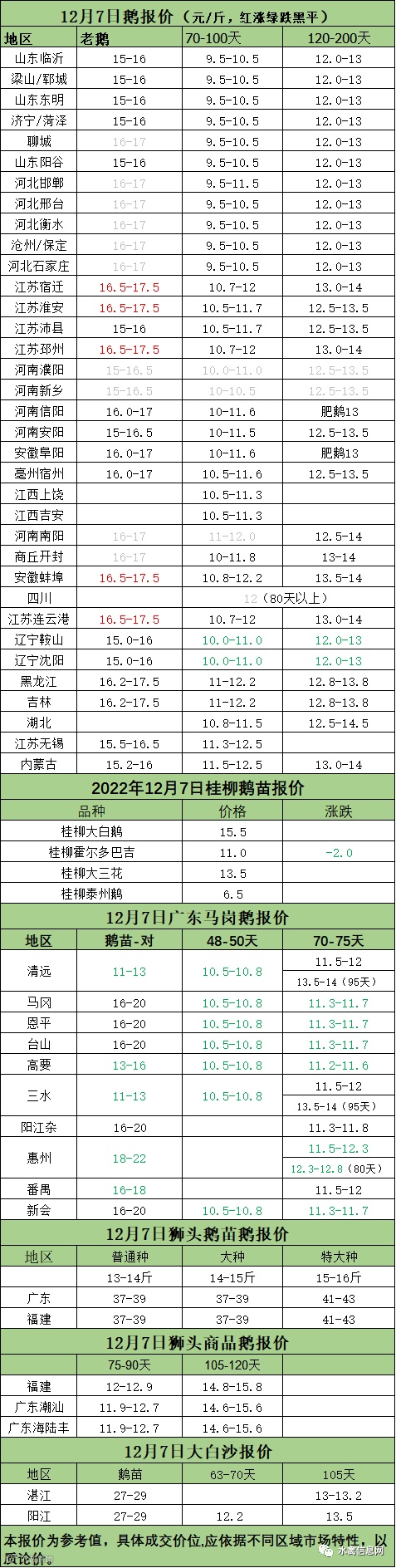 2022年12月07日各品种鹅苗价格