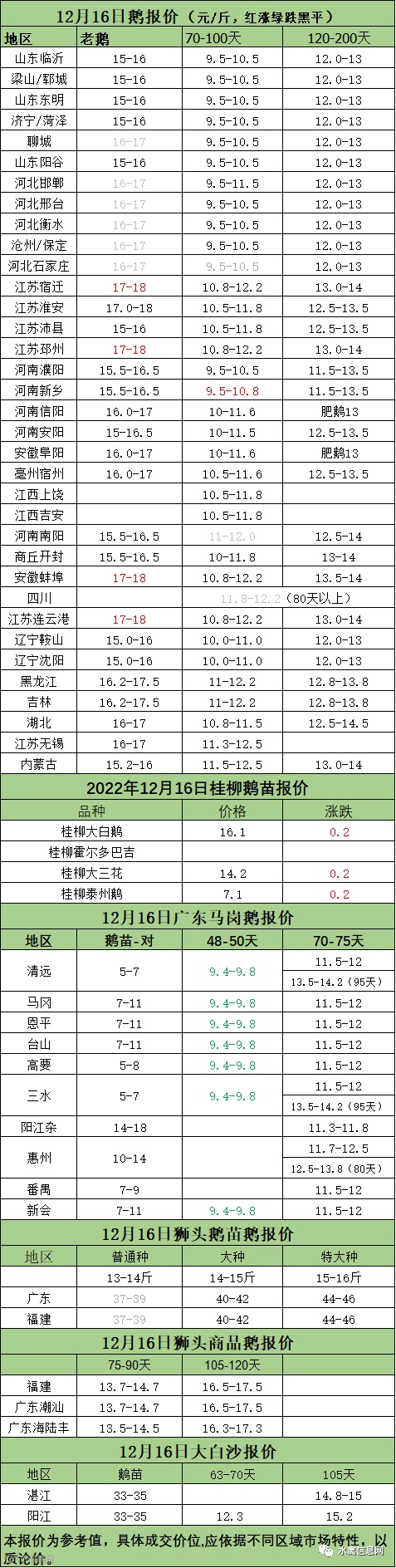 2022年12月16日鹅种蛋价格(元/枚)部分停报