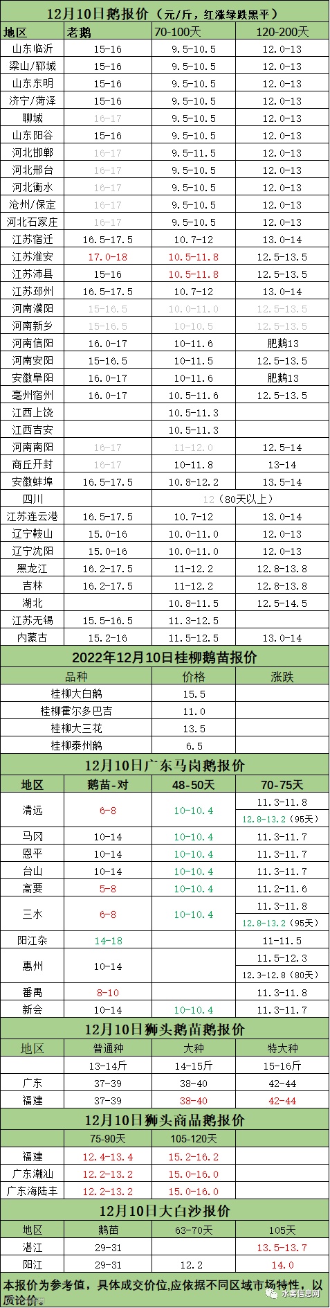 2022年12月10日鹅种蛋价格(元/枚)部分停报