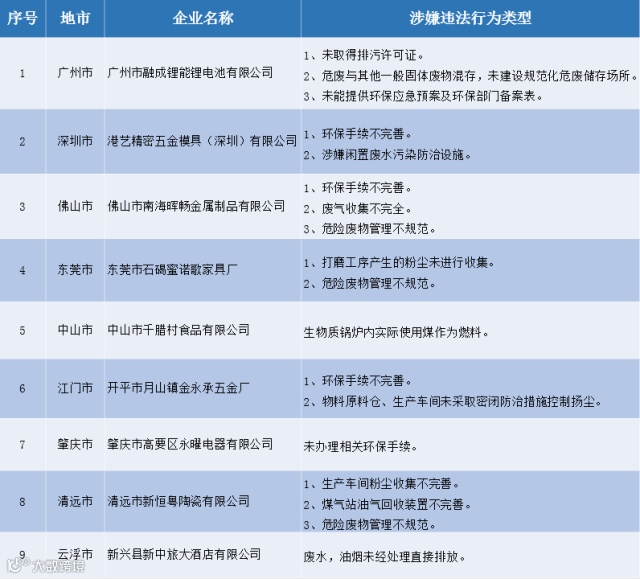 本周各督查组在总结前段时间工作经验的基础上,继续推进专项督查工作。9月1日至9月7日,9个督查组共督查企业(单位)333家,检查发现存在环保问题企业(单位)217家,涉嫌环境违法企业(单位)91家,分别占总检查企业数的65.2%、27.3%。各组检查企业数量(存在问题企业数量)分别如下:广州组28家(16家),深圳组43家(24家),佛山组43家(35家),东莞组36家(22家),中山组32家(15家),江门组43家(31家),肇庆组31家(18家),清远组41家(34家),云浮组36家(22家)。