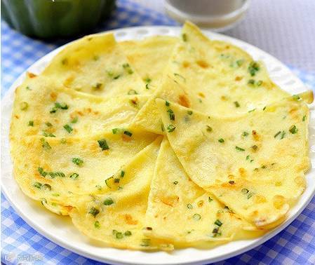 食材:葱末20克,面粉200克,鸡蛋两个,盐10克,水250克,油10克。