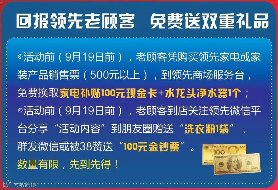 【领先家电家居】9月19日-20日~领先18周年司庆^ 千足金金条 砸到手