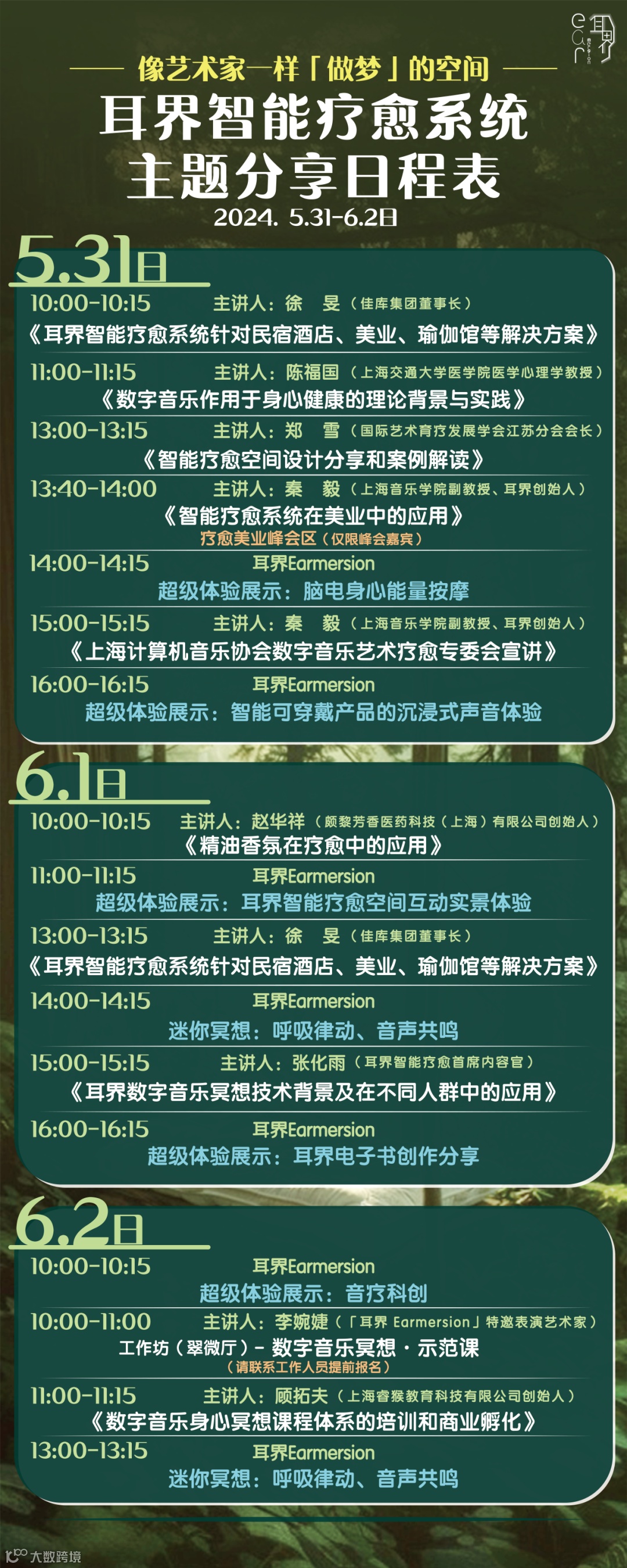 耳界特别设立了一个独特的演讲区,这里将汇聚心理疗愈领域的专家与大师。他们将以专业的视角,为您带来深入而实用的心理疗愈知识以及智能疗愈如何在美业、民宿、酒店等进行落地。无论您是心理疗愈的爱好者还是寻找疗愈商业化的企业家,这里都将是您不容错过的精神盛宴。