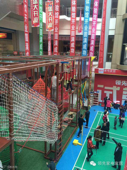 【领先家电家居】儿童拓展训练营试营业当天,家长们带着孩子前来体验、挑战!