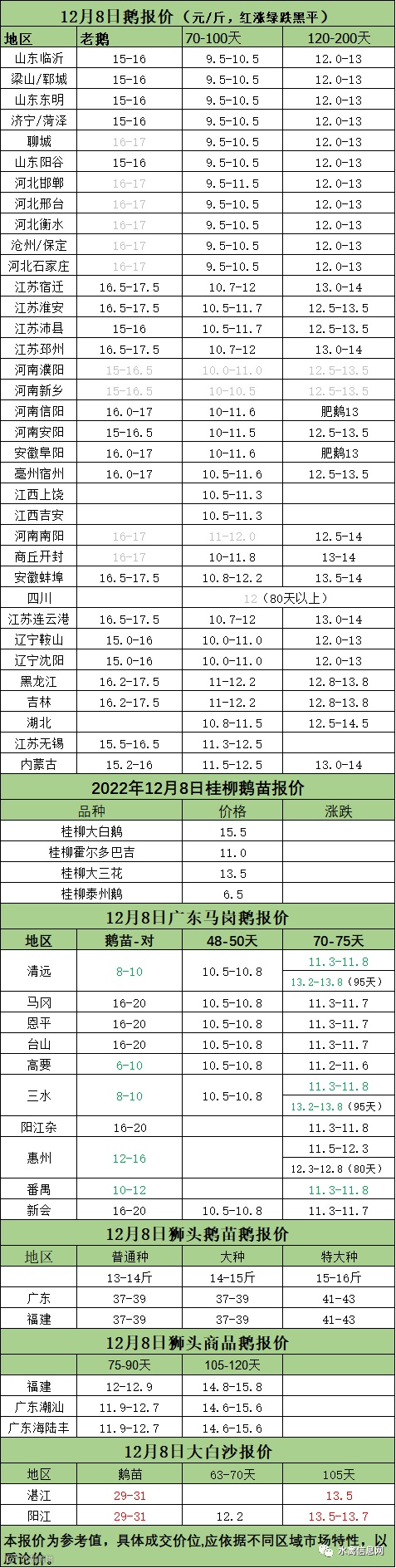 2022年12月08日各品种鹅苗价格