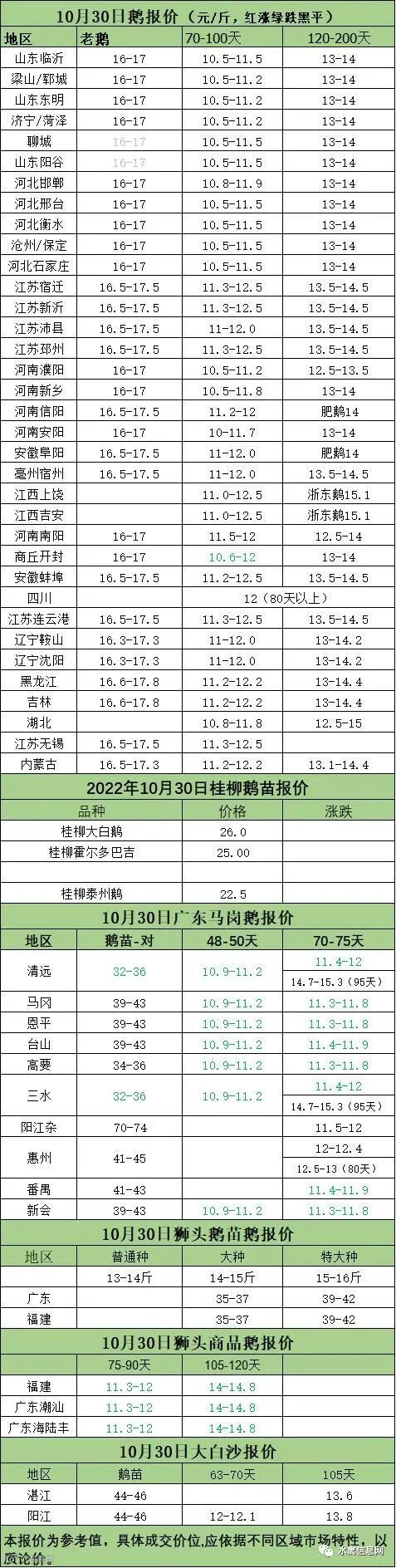 2022年10月30日各品种鹅苗价格