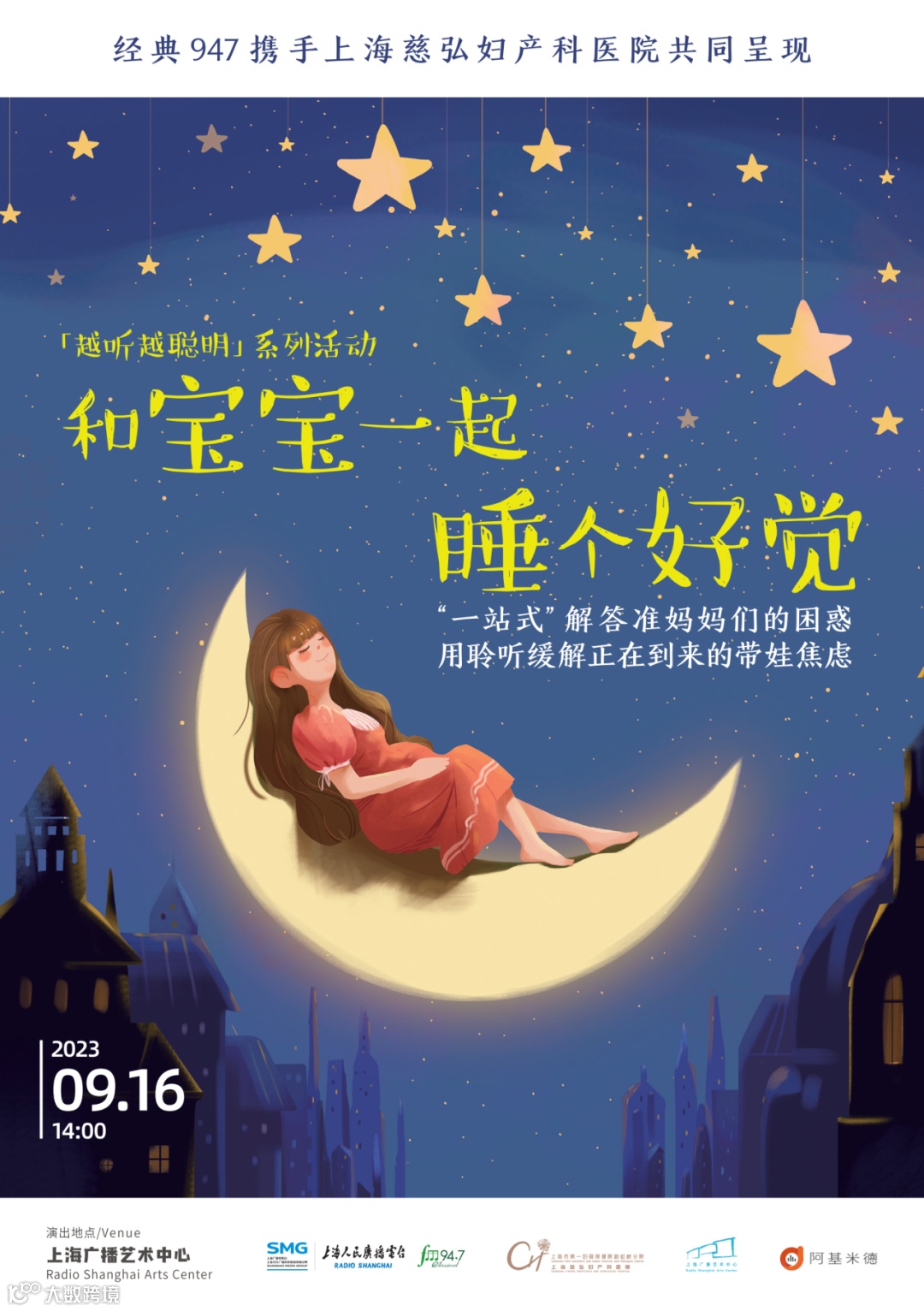 9月16日下午,耳界音乐疗愈与【经典947“越听越聪明”栏目】,【上海慈弘妇产科医院】携手,成功举办了“越听越聪明”系列的首场活动「和宝宝一起睡个好觉」。