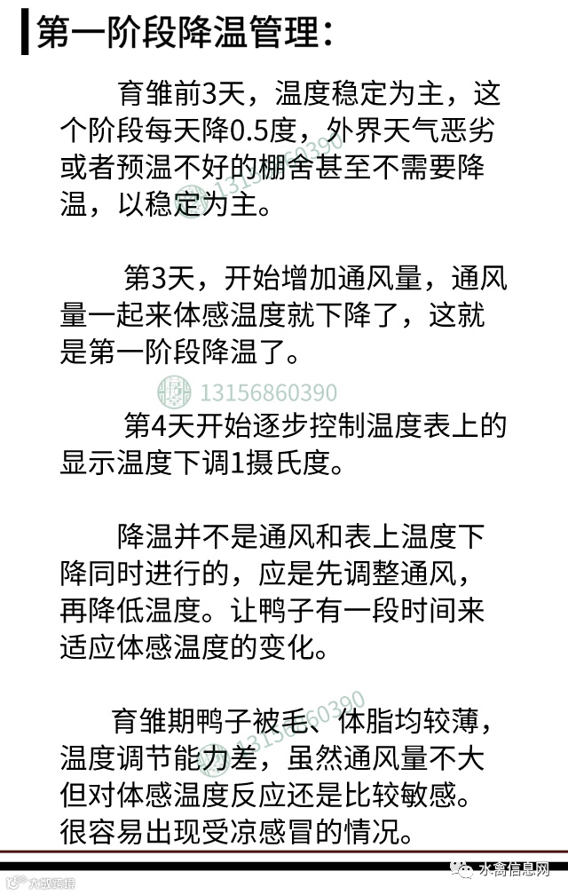 降温并不是通风与表上温度下调(减少供暖)同时进行的。是需要先通风,带动鸭子体感温度下降,待鸭子适应了体感温度后在去减少供暖,降低表上温度。