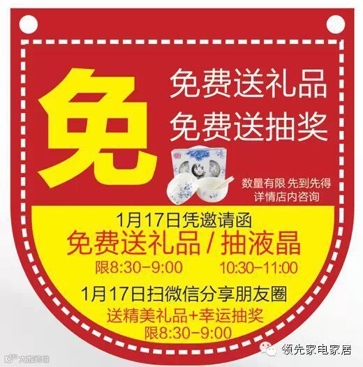 导读:领先新区店家用电器产品盛 大 试 营 业【电视、冰箱、洗衣机、热水器等】1月17日-1月18日(周六日)购家