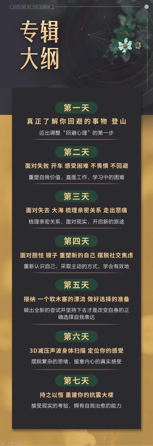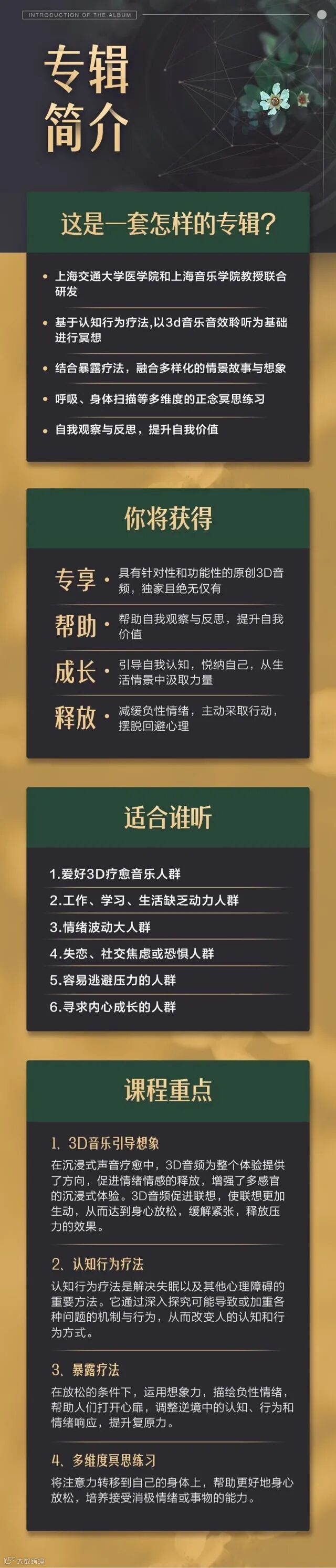 本套课程从阐释原理入手,并将3D情景融合到自我探索过程中,实现心理调整和治愈的目的。