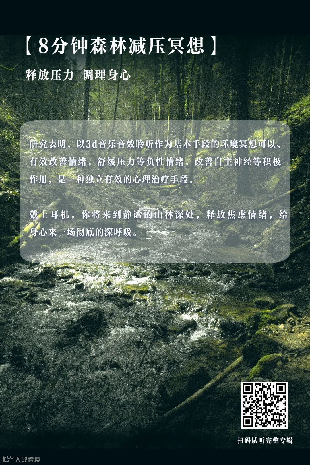 研究表明,以3d音乐音效聆听作为基本手段的环境冥想可以有效改善情绪,舒缓压力等负性情绪,改善自主神经等积极作用,是一种独立有效的心理治疗手段。