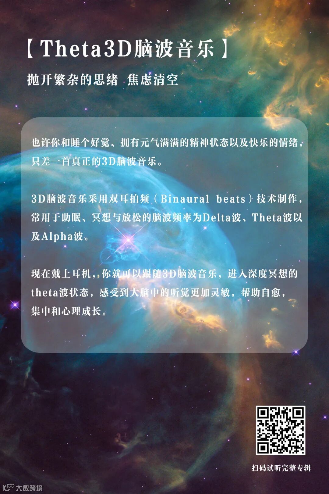 你也可以跟随3D脑波音乐,进入深度冥想的theta波状态.....