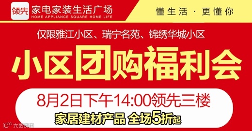 导读:活动时间:8月2日下午14:00活动地点:领先家电家装生活广场 三楼