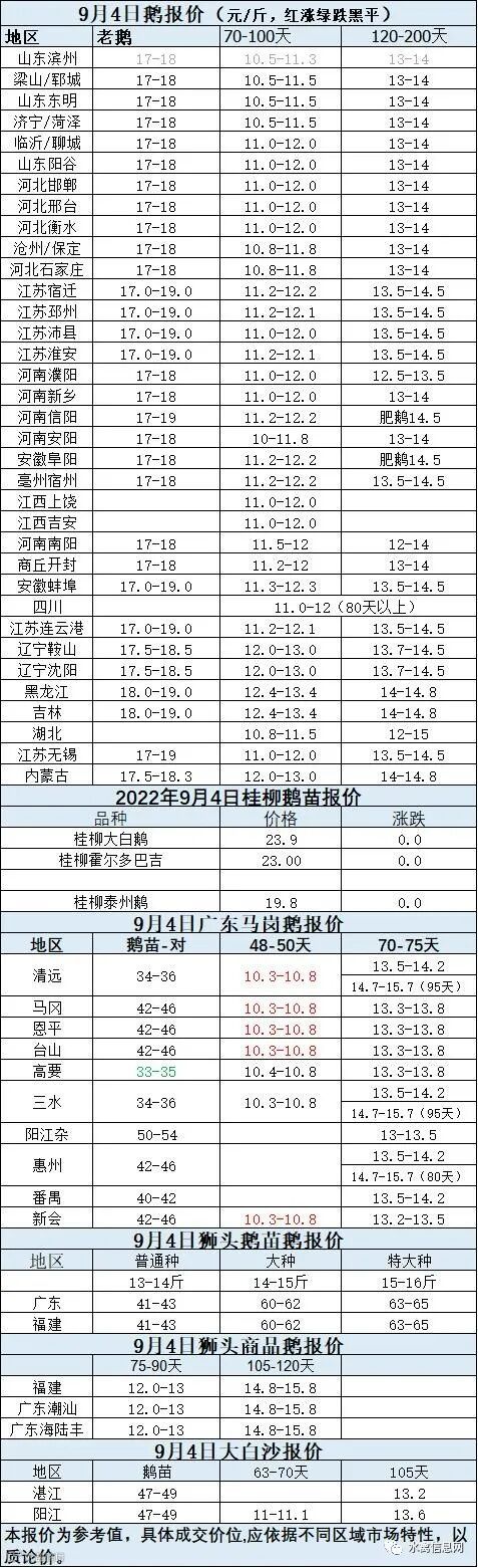 2022年9月04日各品种鹅苗价格