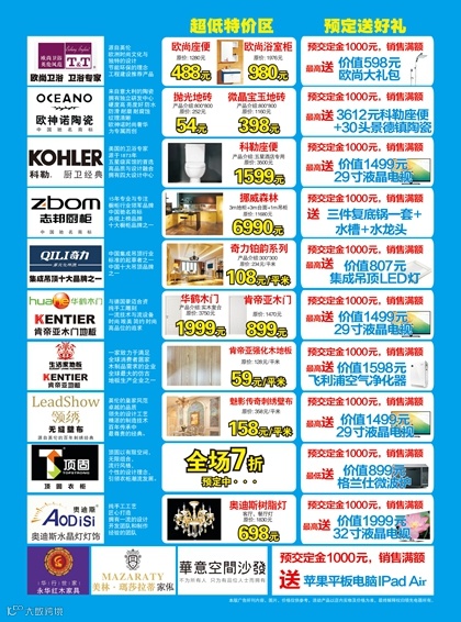 预定7个家装品牌,再加送“32寸液晶电视1台”