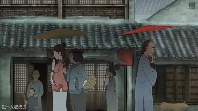 这是一部纯手绘动画作品,整个画面都渗透着浓浓的中国江南水乡特色——小桥流水、白墙青瓦、烟雨朦胧,一切都显得淡雅清丽。每一个动画场景都经过精心设计,烘托故事的发展趋势。