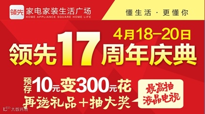 1、本次领先“17周年庆典活动” 领先联合厂家 保价到五一若顾客您不放心,我们承诺补差给您!同时再送您精美礼品