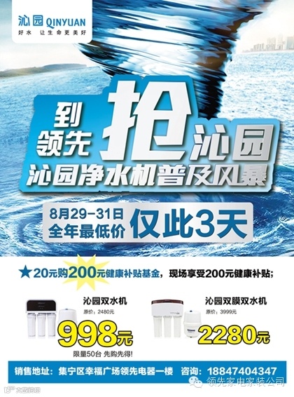 惠民50台—998元沁园福利机(净水器双水机)