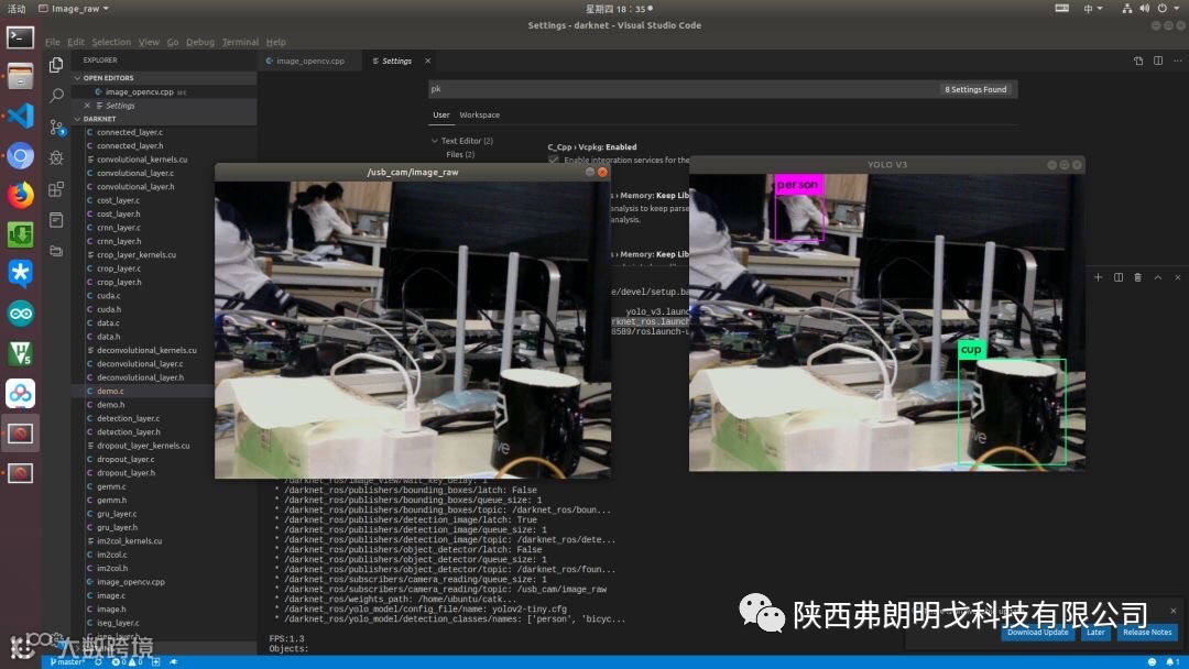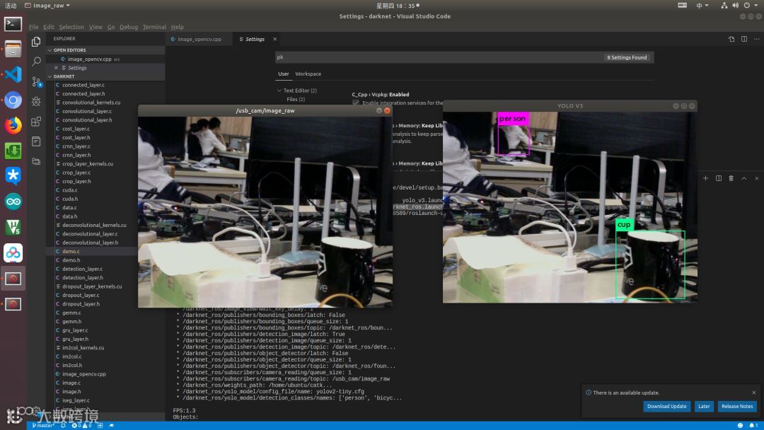 下面就会介绍如何用 ROS 发布的图像信息和 Darknet 连接做目标检测。