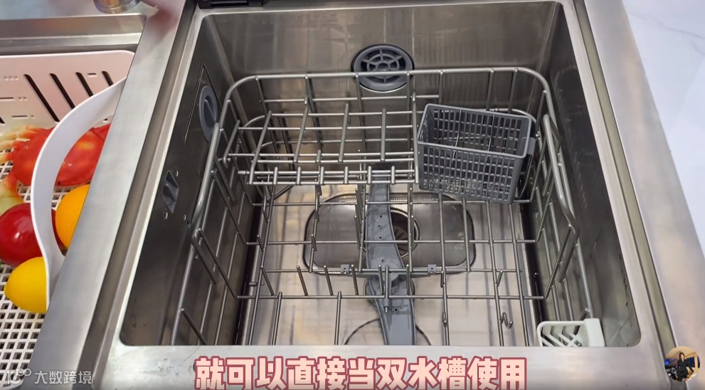 行业首创非固定式喷淋臂,喷淋臂与碗篮集成一体。这样不使用洗碗机时,就可以直接把碗篮取出来,洗碗机也可以当做水槽用。秒变双水槽,空间利用更合理。