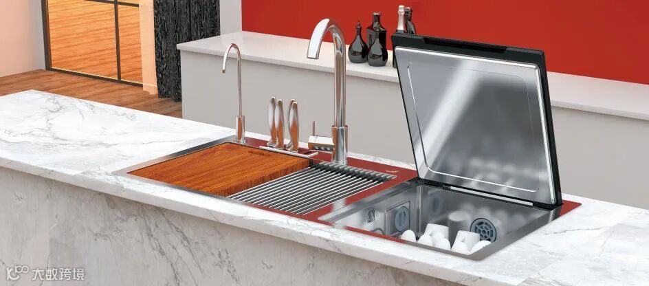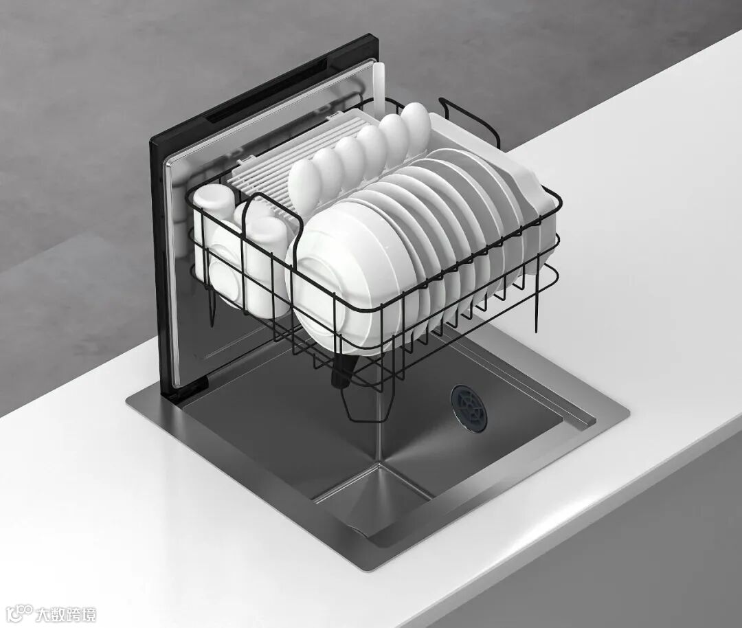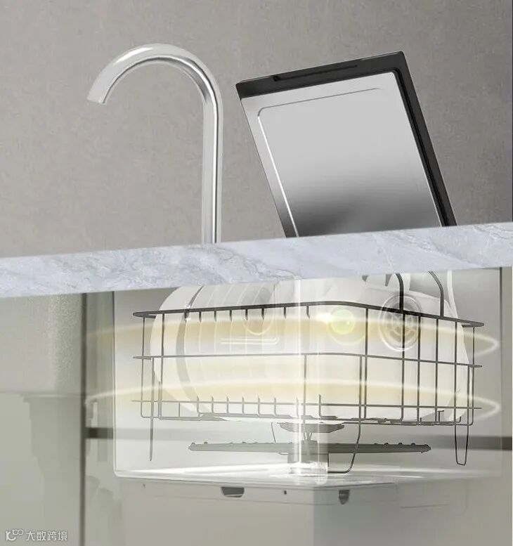 行业首创非固定式喷淋臂:不使用洗碗机时,可以将洗碗篮取出,洗碗机直接当水槽使用。