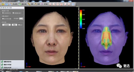 可以自动的将术前术后三维数据进行拟合对齐,找出差异的部分,用不同的颜色显示其区别,并且可以计量出具体数据。