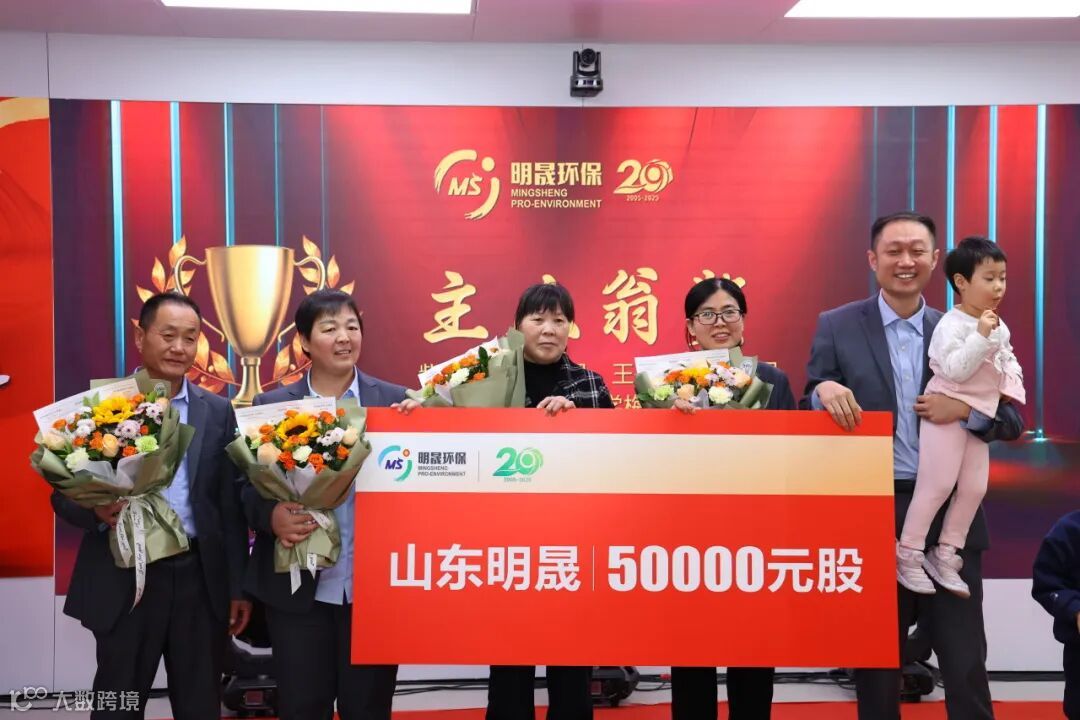 在董事长深情的回顾之后,大会进入表彰环节。当主持人宣读一位位优秀员工的名字,全场响起了热烈的掌声。这些在平凡岗位上创造不凡价值的明晟人,接过的不仅是回顾过去的肯定,更是携手未来的契约——企业以股权激励的方式,鼓励那些在各自岗位上勤劳奉献、勇于创新的同仁继往开来,共同奔赴和创造明晟的下一个精彩十年。