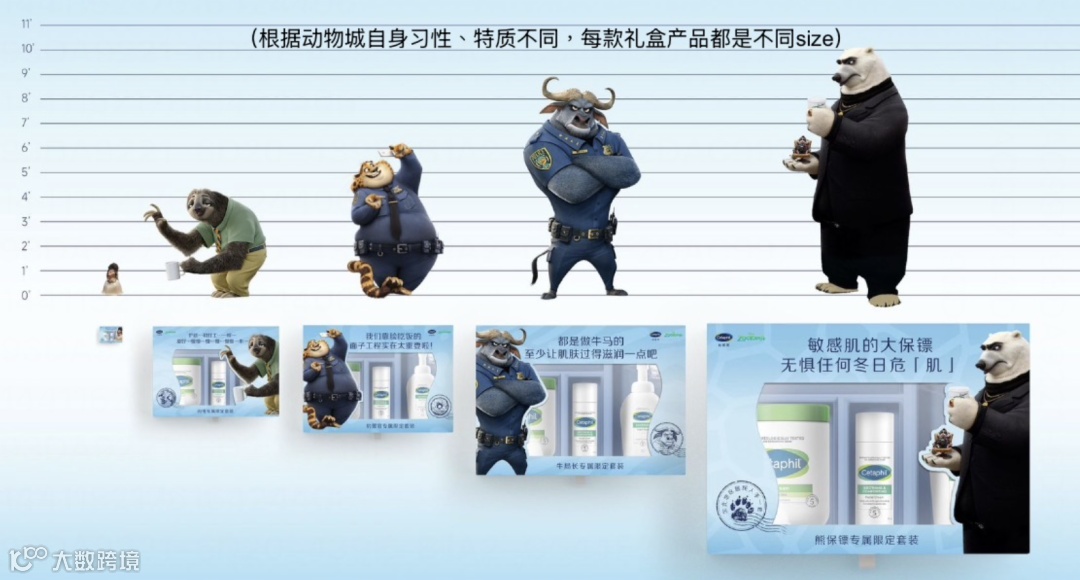 比如我们针对动物城不同动物打造的不同size的试用装…
