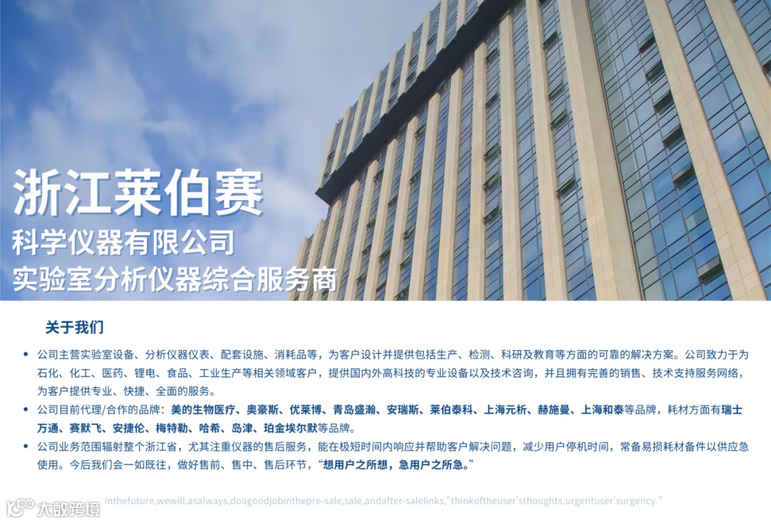 公司主营实验室设备、分析仪器仪表、配套设施、消耗品等,为客户设计并提供包括生产、检测、科研及教育等方面的可靠的解决方案。公司致力于为石化、化工、医药、锂电、食品、工业生产等相关领域客户,提供国内外高科技的专业设备以及技术咨询,并且拥有完善的销售、技术支持服务网络,为客户提供专业、快捷、全面的服务。