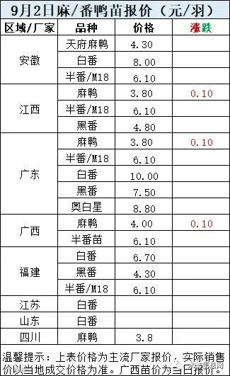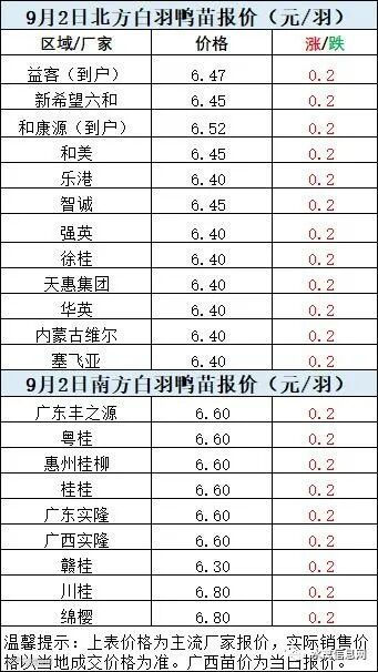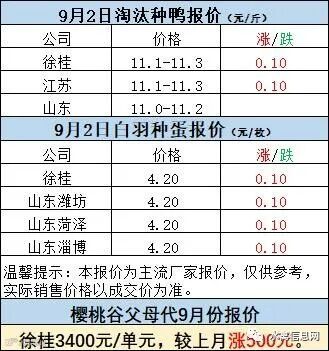 一、9月1日晚至9月2日 白羽肉鸭报价;