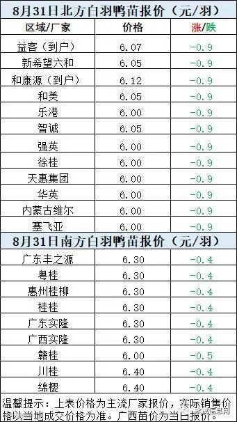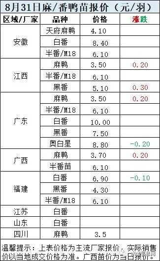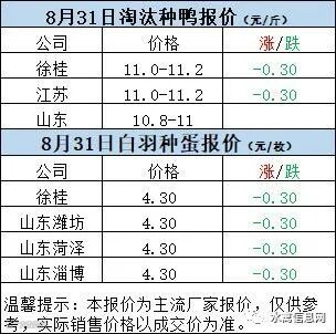 一、8月30日晚至8月30日 白羽肉鸭报价;