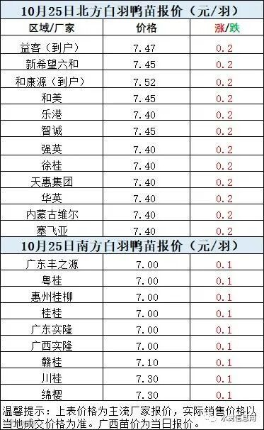 一、10月24日晚至10月25日 白羽肉鸭报价;