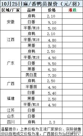 二、2022年10月25日麻鸭苗、半番鸭苗报价;