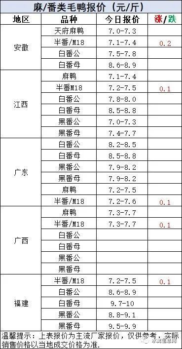 麻鸭苗报价稳定;半番鸭苗报价稳。