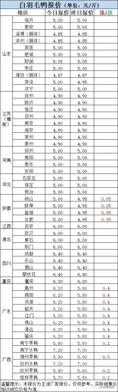 北方市场毛鸭报价以稳为主,局部调整。合同区域冷藏回收合同为主,当前冷藏普遍亏损态势,市场鸭收购情绪一般。
