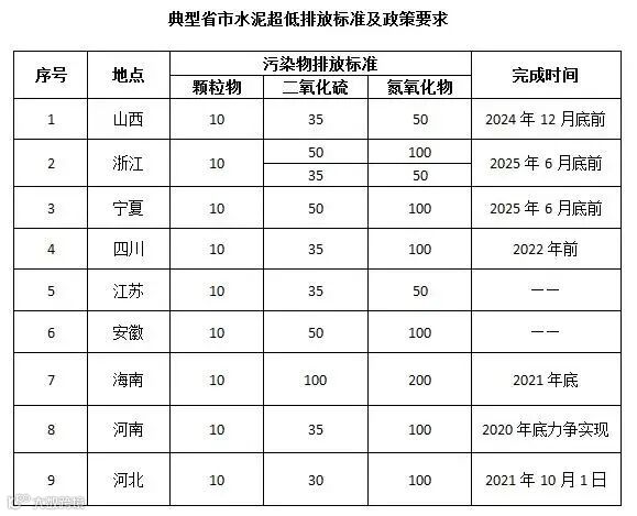 2020年11月,浙江发布《浙江省水泥行业超低排放改造实施方案》。