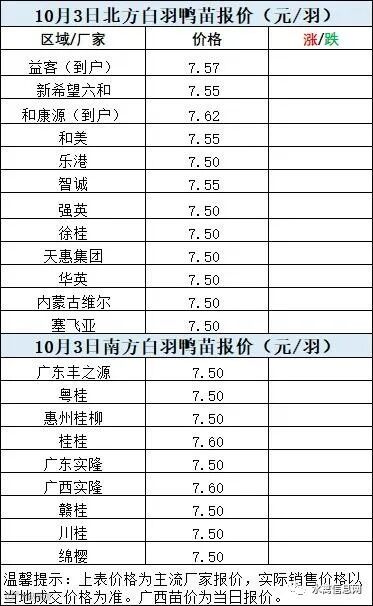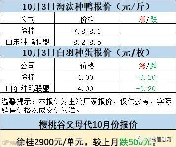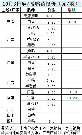一、10月2日晚至10月3日 白羽肉鸭报价;