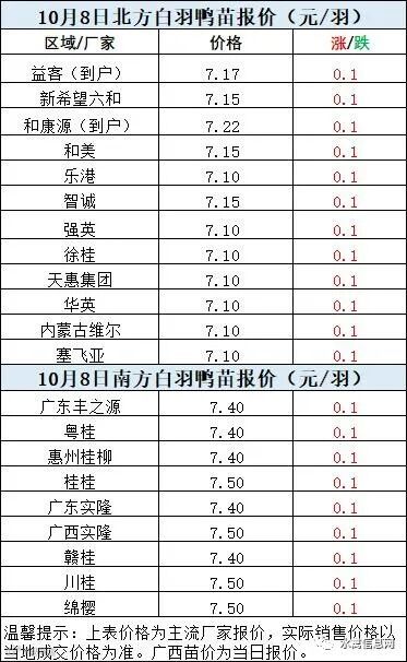 一、10月7日晚至10月8日 白羽肉鸭报价;
