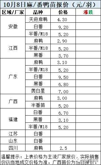 二、2022年10月8日麻鸭苗、半番鸭苗报价;