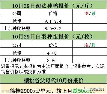 一、10月28日晚-29日白羽肉鸭报价;