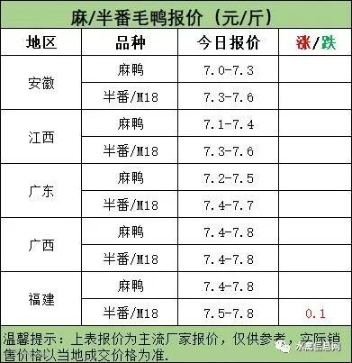 麻鸭苗报价稳定;半番鸭苗报价稳。