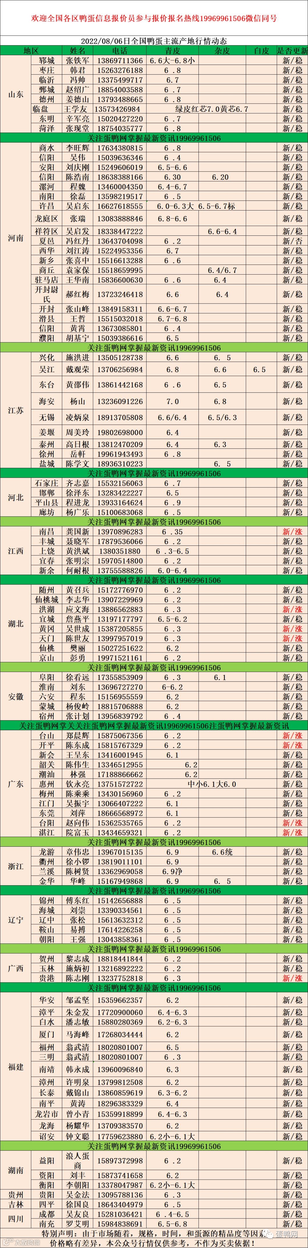 2022年8月6日鸭蛋报价 益牧堂水禽信息