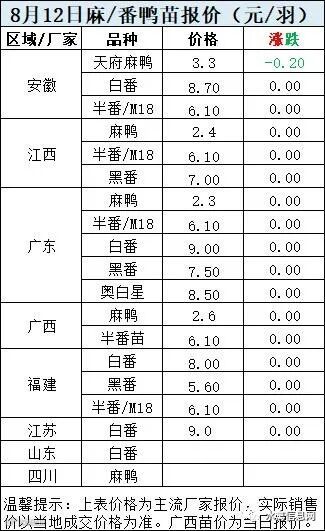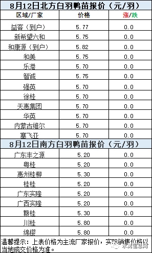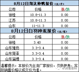 一、8月11日晚至8月12日 白羽肉鸭报价