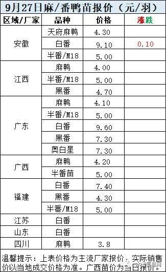 二、2022年9月27日麻鸭苗、半番鸭苗报价;