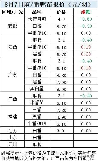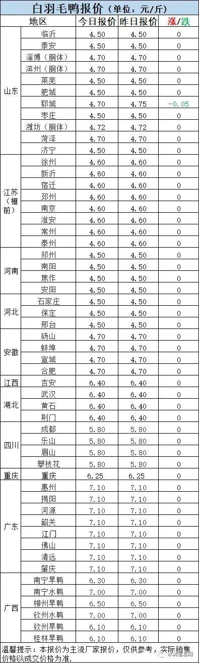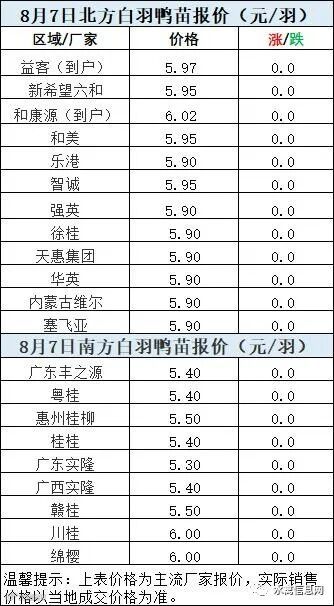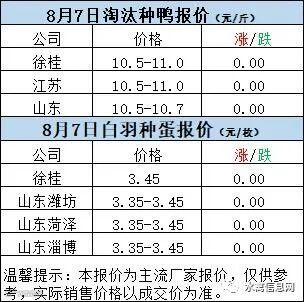 一、8月6日晚至8月7日 白羽肉鸭报价