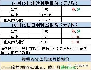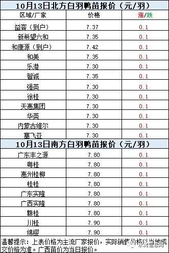 一、10月12日晚至10月13日 白羽肉鸭报价;