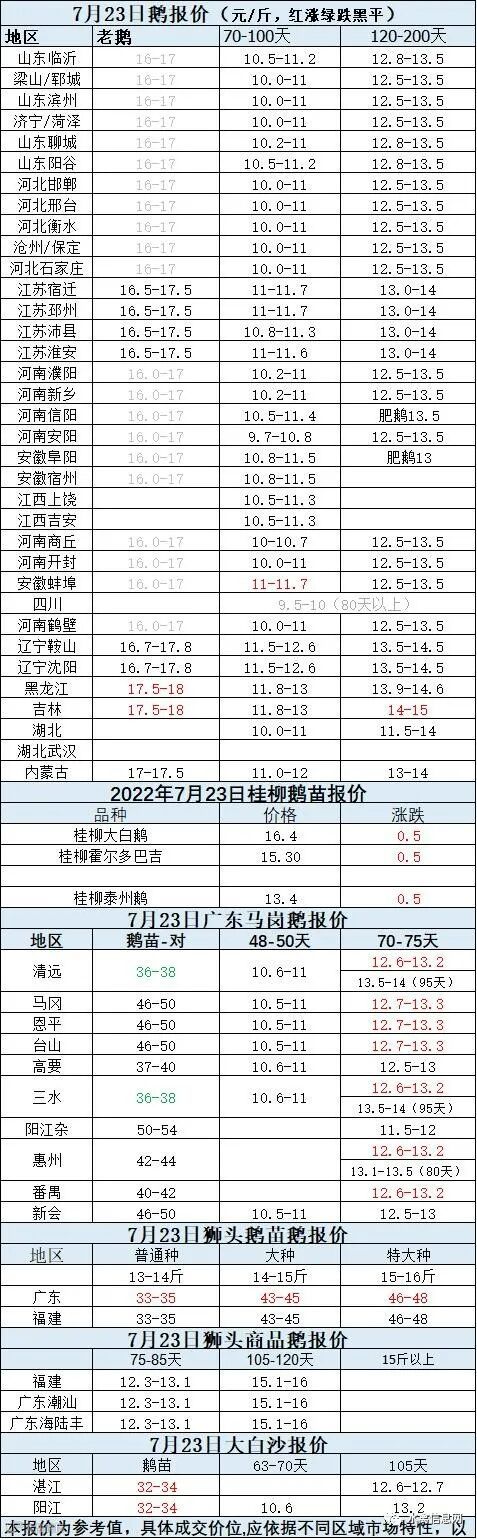 2022年7月23日鹅种蛋价格(元/枚)部分停报