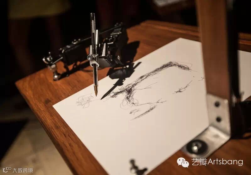 这些机器人由复古课桌、废弃的摄像头、以及机械手组成。画纸被固定在课桌上,机械手握着黑色的圆珠笔,就像一个个画家一样,捕捉着人像的每个细节,认真作画。同时,机器人身上的小马达会即兴创作一段音轨。